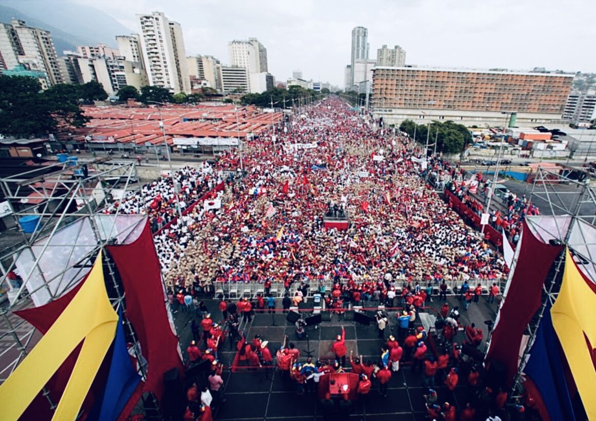 Above: a rally by the participants in Venezuela’s Bolivarian revolution.